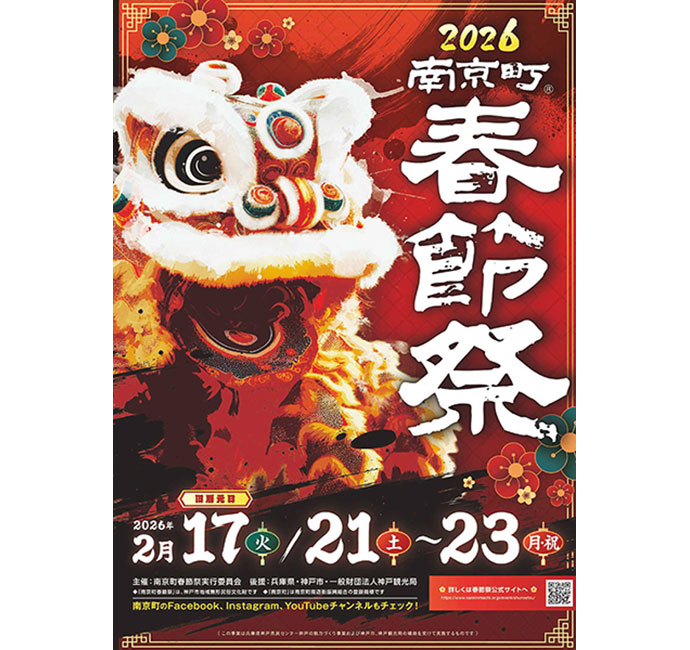中国の春節(旧正月)をアレンジした、南京町の新春恒例イベント。会場の南京町広場には「関聖帝君」の祭壇が設置され、中国の伝統芸能「変臉」、獅子舞、舞踊、太極拳など、見ごたえのあるステージイベントが目白押し!