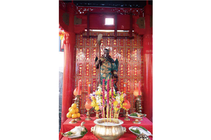商売繁盛の神様としても信仰される「関聖帝君」を期間中特別にお祀り。祭壇へ参拝(線香1本200円)すると、西遊記の登場人物たちと記念撮影もできる。祭壇前ではお守り(500円)も販売。