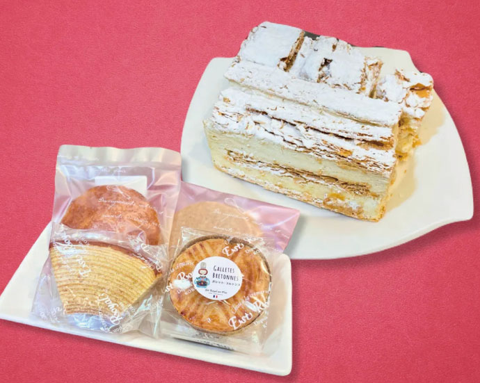 人気のミルフィーユを不揃いでも味はそのまま。お得な「はしっこミルフィーユ」と手作りの焼き菓子のスペシャルセット。