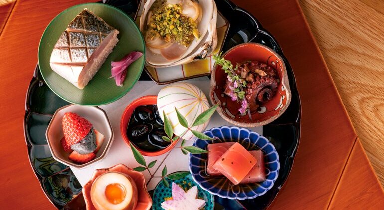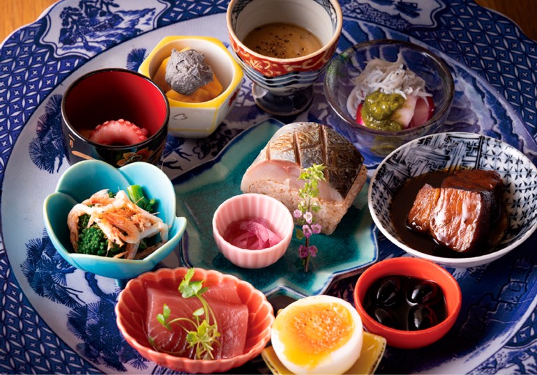 「御料理うみの朝ごはん皿鉢料理仕立て〜酒を呑むなら朝に呑め〜4,500円(税サ込)」を1月から日曜限定(前日までの予約制)で開始。お酒を誘う皿鉢料理の前菜に、ラーメンみたいな素麺、小さな肉料理、レモン香る土鍋ご飯付き。朝は6,600円~と手頃なボトルワインも用意(夜は9,900円~)。+500円で抹茶チョコテリーヌ、コーヒーorエスプレッソを追加できる