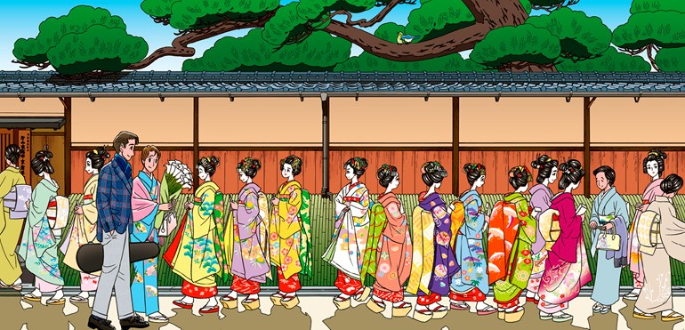 ボクは東京在住ですし、“東男に京女”と言いますからね、やはり京都の女性に憧れをもっています。それに、ある意味、ボクは京都に惚れているんです。何度行っても素敵なところに出会えますし、すぐにまた行きたくなっちゃう。好きだと思う気持ちは何年経っても変わらない。これはもう恋と同じですよね。京都を舞台にした作品はたくさん描いていますが、まだまだ描きたいです。