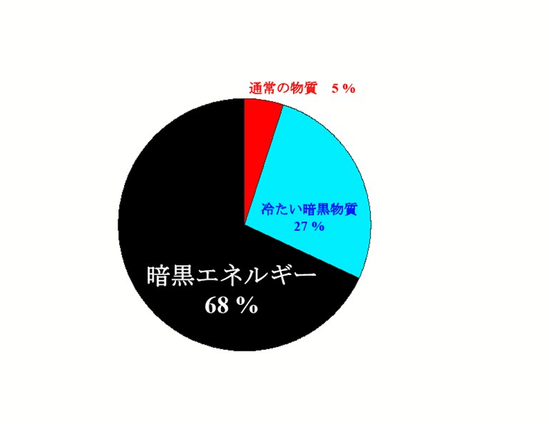 …あれ? 足しても一〇〇パーセントになりませんよね? これまた第18回、第21回、第22回、第25回で繰り返しお話ししてきたように、ビッグバン宇宙論から、宇宙全体では臨界密度ちょうどでなければなりません。それが一〇〇パーセントに相当します。では、「普通の物質」ではなく、「冷たい暗黒物質」ではなく、「熱い暗黒物質」でもない、残りの六八パーセントは?