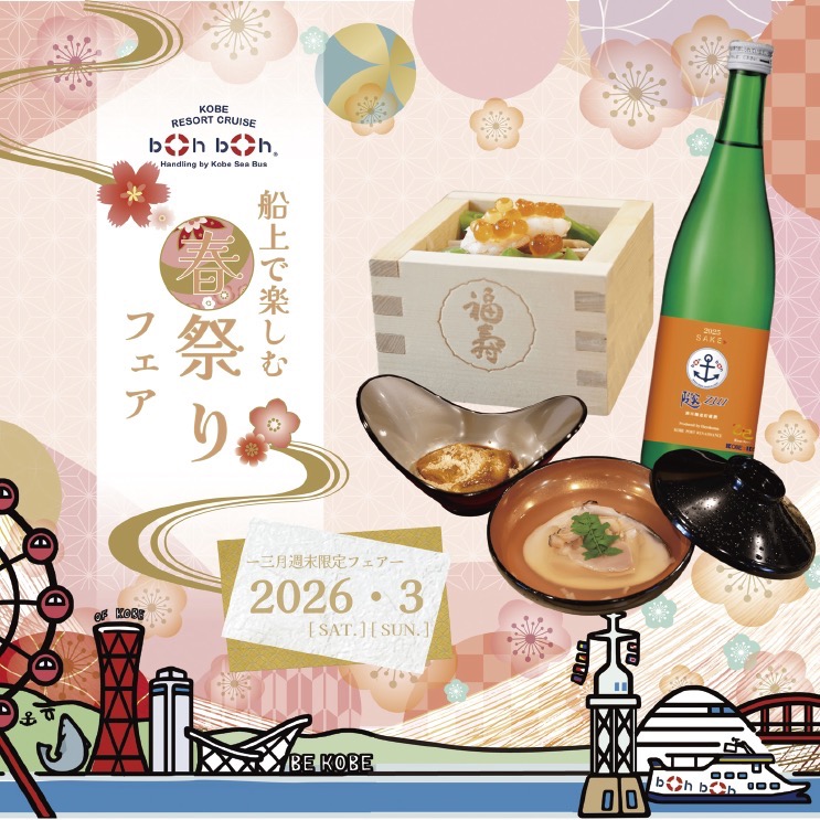 boh boh KOBEでは、船上という非日常の空間で、ご家族そろって楽しめる期間限定フェアを開催します。本フェアでは、ミシュラン1つ星獲得料亭「杦-SEN-」杉澤料理長監修【ちらし寿司セット】をご用意。見た目から華やかで贅沢感のある和のお料理を、船上でゆったり味わっていただけます。さらに、「黒蜜きな粉の葛餅」などもセットになっており、大人の方はもちろん、お子さまにも喜ばれる内容となっています。船上からの特別な景色とともに、家族の思い出に残る“華やかな和の食体験”を、ぜひboh boh KOBEでお楽しみください。