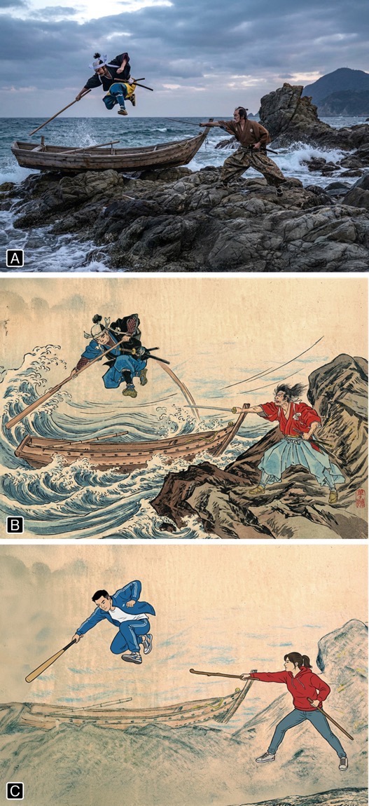 ABCは筆者が5歳の時に描いた『武蔵と小次郎』(同ページ上部に画像を掲載)を元にして