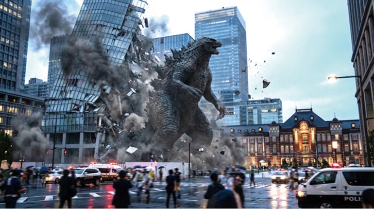 田島氏によるAI動画作品よりゴジラが東京駅を襲う映像のワンシーン
