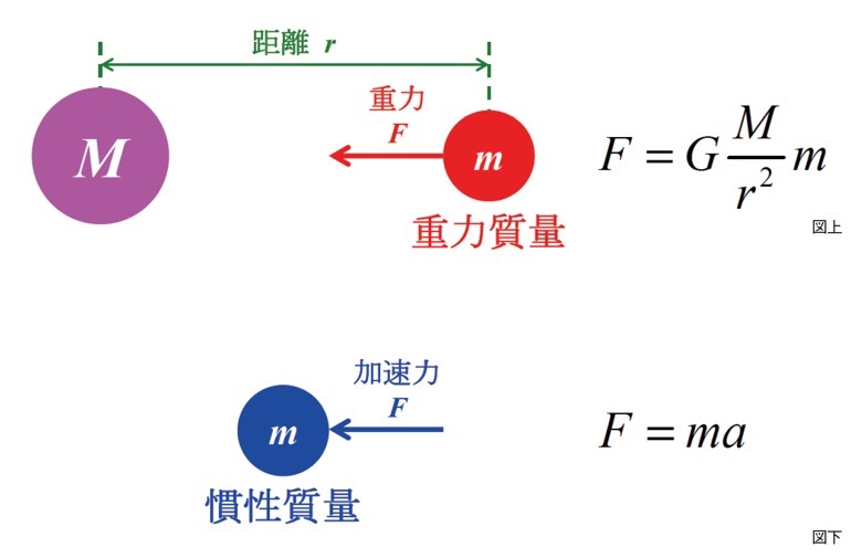 ここで、ちょっと不思議に思われた方がおられたなら、その方は科学を学ぶのに向いています。質量というのは一種類しかないはずなのに、なぜ、わざわざ「重力~」とつけて呼ぶのか。それは、実はもうひとつの質量の考え方があるからです。そしてそれは、この連載をずっと読んでくださっている方なら、ご覧になられたはずです。