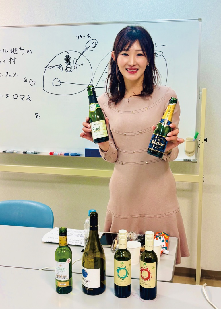 今回は、大阪市中央区にある作家養成スクール「心斎橋大学」に潜入。この日は、タレントの住友未央が講師となり、お酒を飲みながら楽しく知識を学べる「酒場マイスター講座」を開講。教室前の廊下で取材を申し込むと「飲みながらどうですか?」とワインボトルを手に了承をいただき、インタビューが始まった。