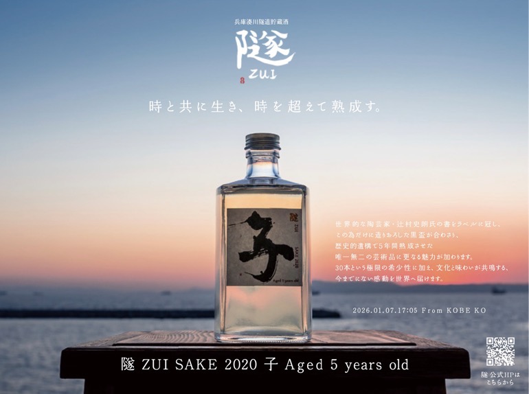 2026年2月5日、国登録有形文化財に指定されている歴史的遺産「湊川隧道」で5年間に渡り貯蔵された日本酒「隧(ずい)」が蔵出しされた。この取り組みは2020年より、早駒運輸株式会社、株式会社神戸酒心館、湊川隧道保存友の会および兵庫県の4者が連携して推進。昨年より新たなプロポーザル「湊川隧道の保存・活用事業」への採択を経て、長年にわたる貯蔵が継続可能となった。貯蔵されている生酛純米酒には六甲山系がもたらす名水「宮水」、その裾野で育まれた最高品質の酒米、そして灘酒に命を吹き込む寒風・六甲おろしなど、自然の恵みを惜しみなく活かして醸された、神戸酒心館の銘酒「福寿」を使用。近代土木技術の英知を結集した日本初の河川トンネル「湊川隧道」は「天然のカーヴ」と称され人工的な空調や温度管理は一切不要。CO2を排出せず平均気温約14度という安定した環境の中、まろやかで奥行きのある味わいが誕生した。この神戸発のサスティナブルな取り組みは多様な時代において注目を集めている。
