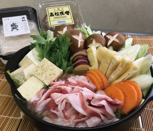 「高松清太夫老舗」の味噌と「岡田本家」の酒粕、地元野菜をふんだんに使った加古川の鍋料理。各店で材料を購入して自宅で再現するもよし、「かき庄」でも要予約で食べられます!