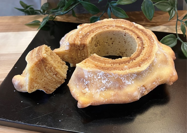地元産の玄米をまるごと製粉した“生玄米粉バームクーヘン”はソフト・ハード・よもぎスフレの3種類。中でも「玄米ハードバーム」はサックリ感ともっちり感が魅力。