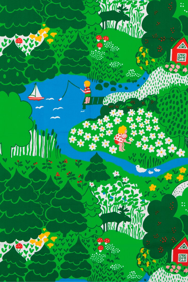 スウェーデン・テキスタイルの大きな特徴は、自然や植物をモチーフにしたデザインです。植物を科学的に研究するボタニカルアートが根付き、自然との共生を大切にするスピリットが息づいています。もう一つの特徴がモチーフに込められた物語性です。自然の風景や動植物、日常の何気ないシーンが織り込まれ、特に子ども向けの生地デザインには絵本や児童書の世界観を題材にしたものが多く、世代を超えて親しまれています。歴史やデザインの変遷を辿りながら、デザイナーが一つ一つの作品に込めた物語に思いを馳せてみてはいかがでしょうか。