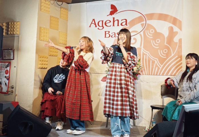 現在、神戸市内にある『Ageha Base』(中央区下山手通2-1-4 KWビル地下1F)での定期公演、さらには幼児向けの余興からライブ制作まで、自らプロデュースを手掛けている。島根で生まれ、関西を代表するユニットへと成長した二人の歩みは、これからも止まらない。今回の取材はこれにて終了。さやかさん、こころさん、ありがとうございました!イエスハッピー!15周年おめでとうございます。