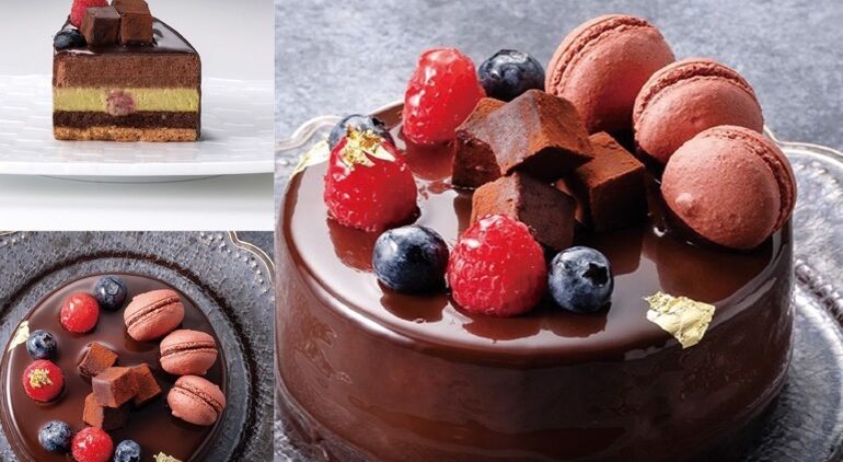 可愛らしいプチマカロンやショコラキューブ、2種のベリーを飾り、見た目も華やかさも楽しめるボックサン通販限定の冷凍ケーキ。天然バニラビーンズとベルギー産クーベルチュールチョコレートを贅沢に使ったムースを、ピスタチオムース、しっとりとしたココア生地で重ねました。