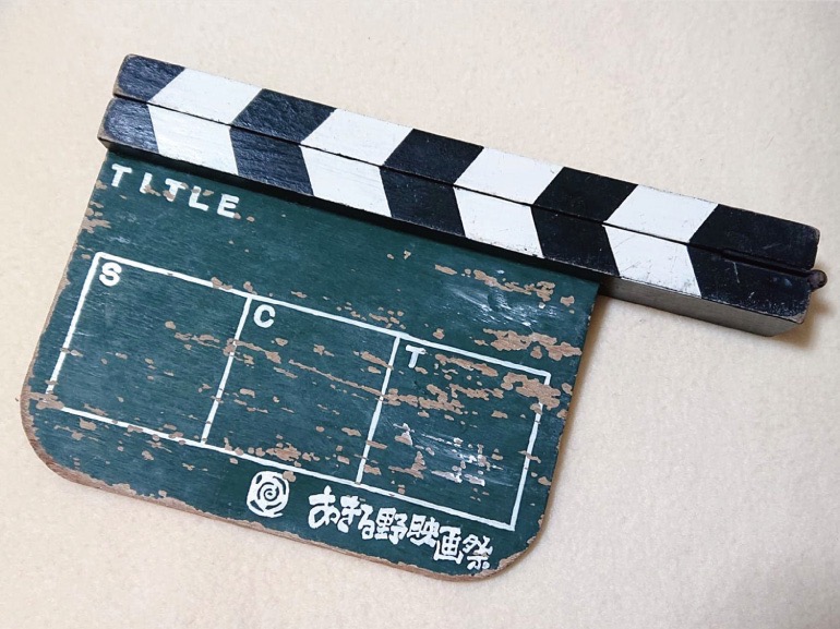 ▲あきる野映画祭で受賞した際に頂いた愛用のカチンコ
