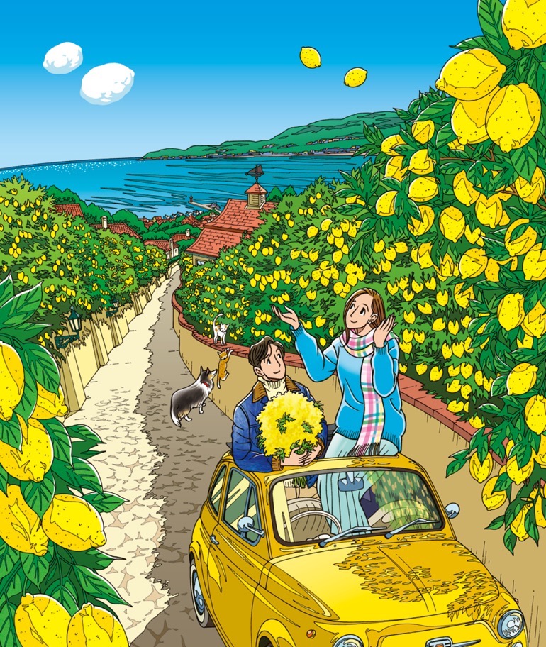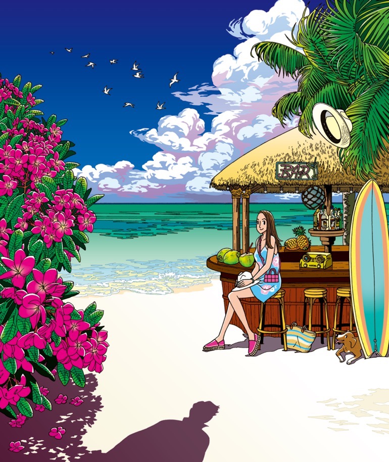 わたせさんの代表作『ハートカクテル』は、週刊誌に初めてオールカラーで掲載され、カラー漫画の先駆けとなった。「日本の漫画が空を青色だけで表現していた頃、フランスの雑誌では、ピンクや黄色も使って空を自由に表現していました。自然の中にある色は、空も海もひとつではない。ボクは刺激を受けて、それから自由な色彩を意識するようになりました」。その日からわたせさんの色彩への探求は続き、作品は今日も見る人のイマジネーションを刺激し続けている。