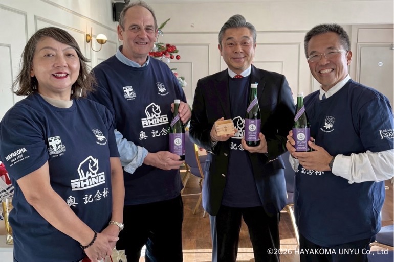 本取り組みについて、早駒運輸株式会社 ブランディングプロデューサーの渡邉美香さんは次のように語る。「昨年、ラグビーのご縁をきっかけに『隧-ZUI-』は、ついに日本を超えて英国へと海をわたり、英×日ラグビーの伝統と精神を受け継ぐ『奥記念杯』へと広がりをみせました。この取り組みに対し、駐英国日本国大使の鈴木浩氏より感謝のお言葉を頂戴するとともに、日本の文化価値を英国に伝える取り組みとして受け止めていただけたことは、私たちにとって大きな励みとなりました。さらにこの機会を契機に、弊社が全面支援する女子ラグビーチーム『神戸ファストジャイロ』の活動にも関心をお寄せいただき、ラグビーを通じた文化交流という新たな可能性にもつながっています。このように『隧 -ZUI-』を起点として広がるご縁は、酒、文化、スポーツ、そして人をつなぎながら、神戸から世界へと新たな価値を生み出し続けています。」
