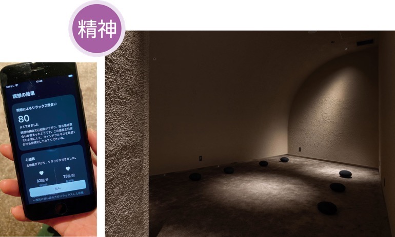 筆者は4F『メディテーションケーブ』で「脳の休息」を体験。しっかりリラックス!