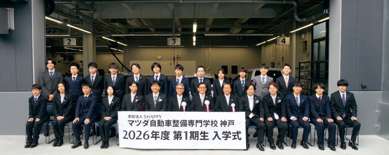 花吹雪く4月9日、神戸マツダが新たに開設したMASTeC KOBE(マツダ自動車整備専門学校)の最初の入学式が挙行された。会場の神戸マツダ本社大ホールに新入生やその保護者、関係者ら約300名が参集。華やかかつ厳かな雰囲気に包まれ、全国的にも稀有な自動車ディーラーが運営する整備士養成学校がいよいよアクセルを踏み出した。