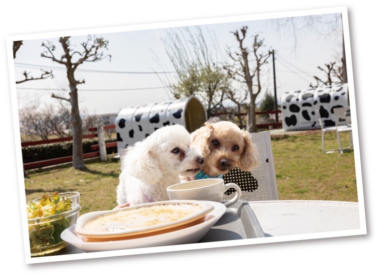 ポカポカ陽気のこれからは、兵庫県産但馬牛やウィンナー等、5種類の肉と地元産野菜とごはんがセットになったバーベキューもおすすめ。ワンちゃんと一緒にテラス席でぜひ!