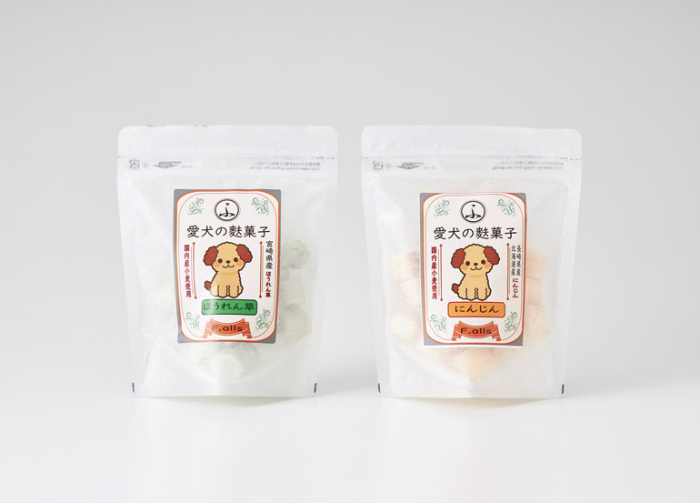 姫路の老舗麩メーカーとペットサロンがコラボした、低カロリーで軟らかな食感が特徴の犬用おやつ。ほうれん草、にんじん、かぼちゃ、にぼし、さつまいもなどの種類が豊富
