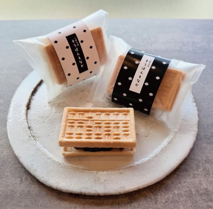 小野市の藤井製菓より最中の皮を引き継いだ「そろばんもなか(粒あん・白あん)各432円」