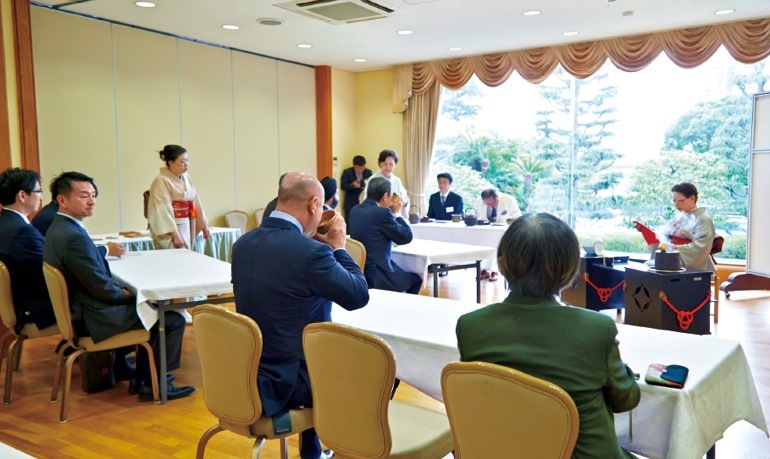 今年は神戸倶楽部で開催された。窓越しの初夏の緑が美しい
