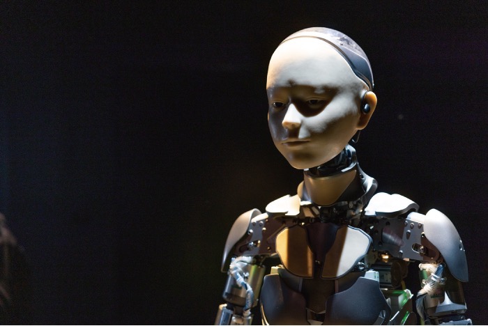 出口では子どもの姿をした超精巧なロボットと対話できる