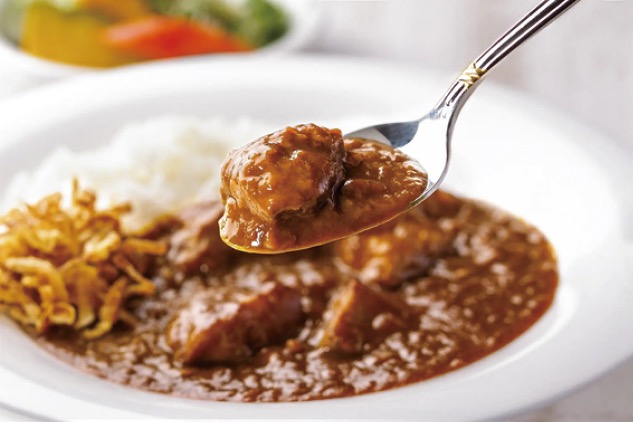 じっくりと甘みを引き出した玉ねぎをふんだんに使用しているのが味の決め手。隠し味にはアップルプレザーブを使用。玉ねぎの甘味の後にアップルプレザーブのほのかな酸味が鼻をかすめ、最後にホテルオリジナルブレンドのスパイスのスパイシーな辛みも感じる、唯一無二の味わいを実現。