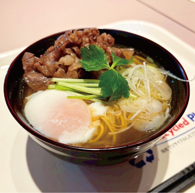 「えきそばが3,850円!!」と開幕前から話題沸騰。まねきの「究極の神戸牛すき焼きえきそば」は、姫路のソウルフード「えきそば」に、柔らかな神戸牛をたっぷり100g、甘辛く煮込み、温泉卵と共に贅沢にトッピング。立ったままスピーディに食べるいつもの「えきそば」とは一線を画す別格の美味しさ。石川県の輪島塗の漆器で提供されるのも特別感をアップ!