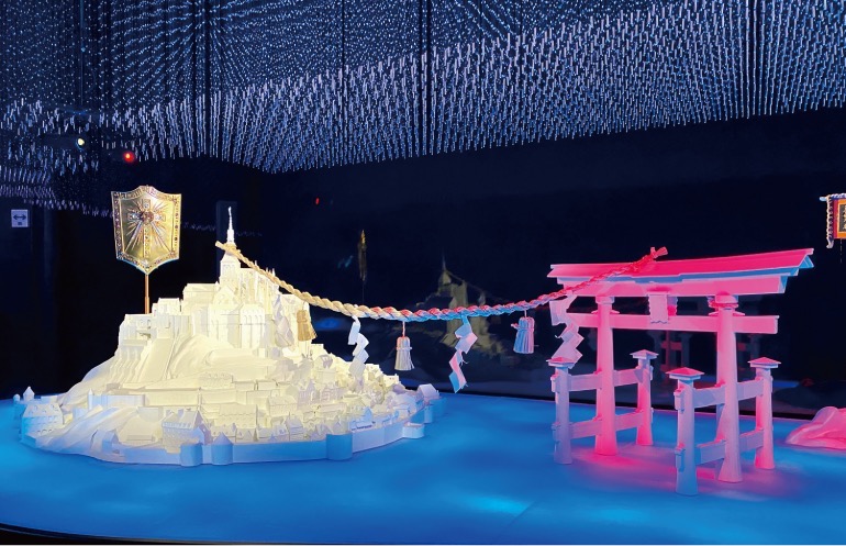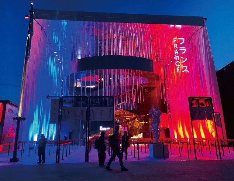 テーマは「愛の讃歌」。環境問題の解決に向けた「自然への愛」をはじめ、84個の「ルイ・ヴィトン」のトランクを配したライブラリーで職人がルイ・ヴィトンのカバンを作る様子が映し出される「職人への愛」など、様々な愛に導かれる未来のビジョンを提案。ルイ・ヴィトンやクリスチャン・ディオール、ショーメ…とお洒落好きにはお馴染みのブランドのこだわりの世界観の展示は必見。また1Fにはクロワッサンやサンドイッチを販売するブーランジェリー、さらにメディアデーでは内覧できなかったが、美食の国ならではの料理やワインを楽しめるレストランもあるそう。
