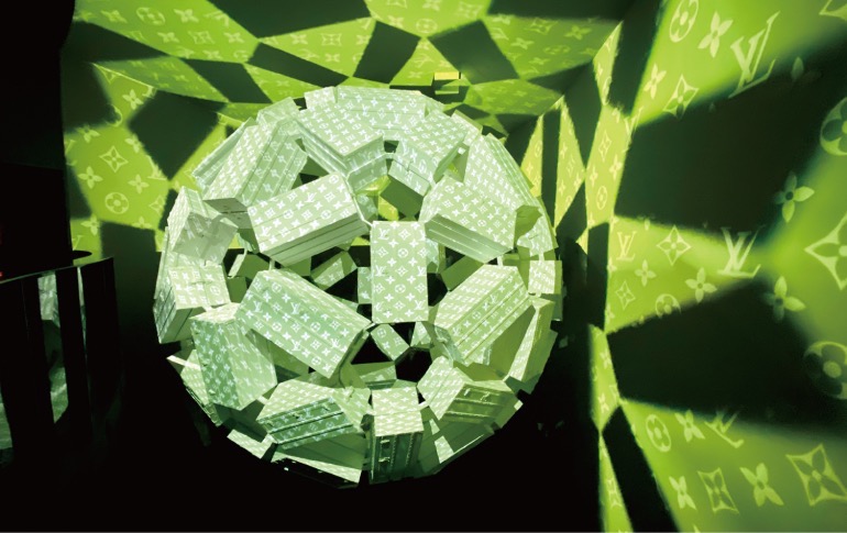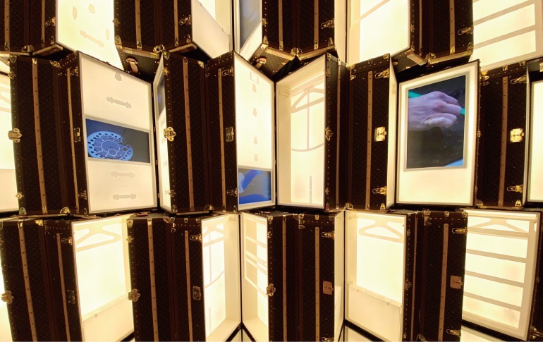 84個のルイ・ヴィトンのトランクが積まれたライブラリー空間。