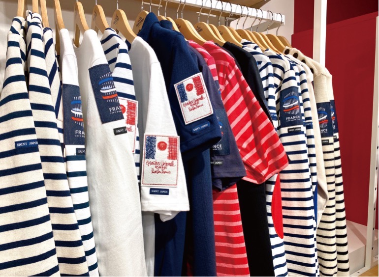 メイド・イン・フランスの「セントジェームス」は万博の思い出を彩るお土産に◎。EXPOワッペンの付いた限定アイテムはぜひゲットしたい!その他にもセンスあふれるアイテムがズラリ