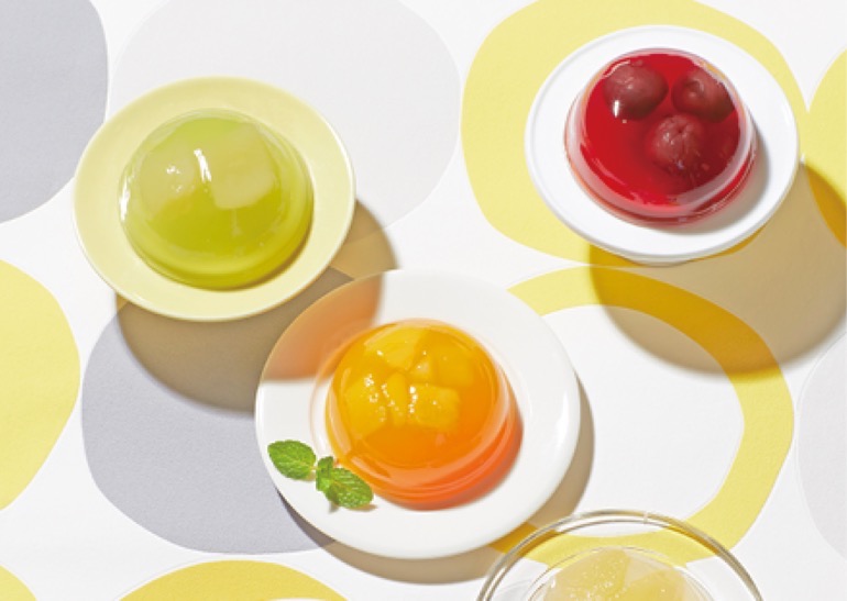 フルーツのみずみずしさや食感をとじこめた果肉入りゼリー。今年は「ラ・フランス」が新登場!その他「オレンジ」・「りんご」・「グレープ」・「ダークチェリー」・「白桃」・「マンゴー」の7種類の味わいをお楽しみください。※お酒は使用しておりません。