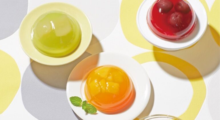 フルーツのみずみずしさや食感をとじこめた果肉入りゼリー。今年は「ラ・フランス」が新登場!その他「オレンジ」・「りんご」・「グレープ」・「ダークチェリー」・「白桃」・「マンゴー」の7種類の味わいをお楽しみください。※お酒は使用しておりません。
