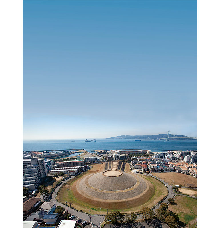 明石海峡を一望する高台に位置する「五色塚古墳」は全長194m、後円部125.5m、兵庫県内…